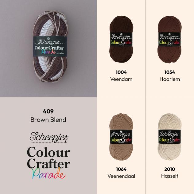 Scheepjes Colour Crafter Parade is een zijdezacht garen gemaakt van een superieure kwaliteit acryl, dat mooi glad blijft en niet pilt. Het is hypoallergeen en gemakkelijk in onderhoud. Door de grote bollen leent Colour Crafter Parade zich bij uitstek voor het breien of haken van grote woonaccessoires, zoals dekens en kussens, maar natuurlijk ook voor knuffels, amigurumi of kleding. Scheepjes Colour Crafter Parade en Colour Crafter hebben dezelfde samenstelling  en naalddikte, dus je kunt de garens onderling gemakkelijk combineren!