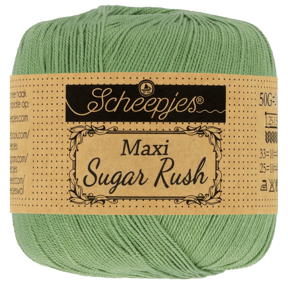 Scheepjes Maxi Sugar Rush is een zeer fijn gemerceriseerd garen van 100% katoen. Scheepjes Maxi Sugar Rush heeft een subtiel glansje en een sterk getwijnde draad, waardoor het brei- of haakwerk een fraaie gladde afwerking krijgt. Dit fijne garen is ideaal voor opengewerkte brei- of haakpatronen, zoals ajourbreien, kantbreien of filethaakwerk. Scheepjes Maxi Sugar Rush heeft het EN 71-3 keurmerk, wat aangeeft dat dit garen veilig is in gebruik voor personen met een gevoelige huid en met name voor speelgoed voor baby's en kinderen. Dat maakt dit garen tot een verantwoorde keus voor bijvoorbeeld babydekentjes, knuffels of amigurumi.